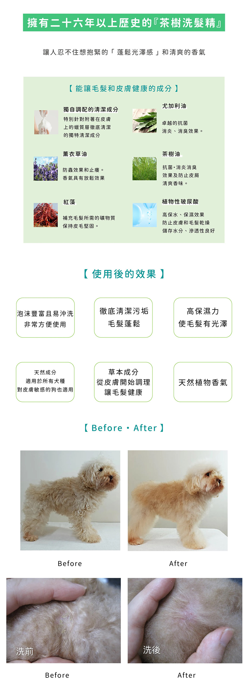成分 : 茶樹油、紅藻、桉樹油、迷迭香油、薰衣草油、蘆薈凝膠、香茅油、椰油
