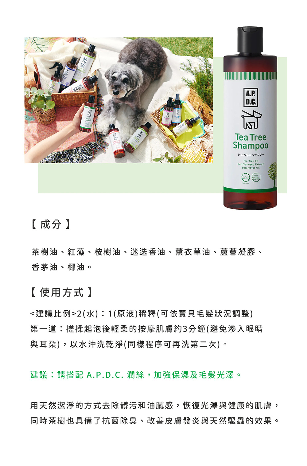 建議:請搭配 A.P.D.C. 潤絲,加強保濕及毛髮光澤。