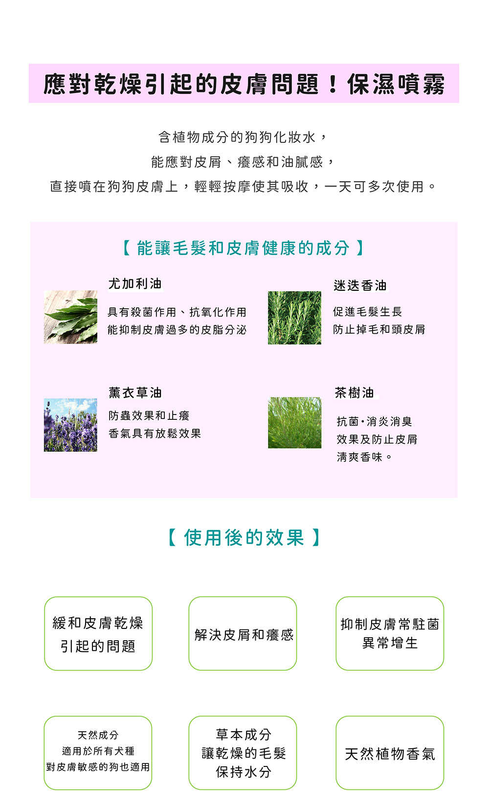 成分 : 澳洲堅果油、桉樹油、茶樹油、迷迭香油、薰衣草油、植物甘油