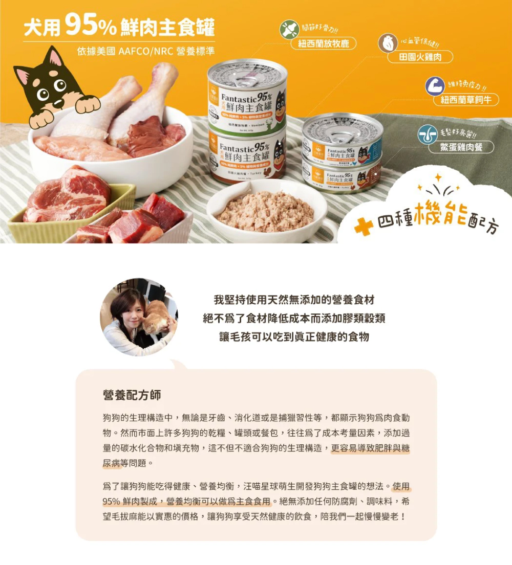 ● 95% 鮮肉及內臟+5% 植物與必需營養素