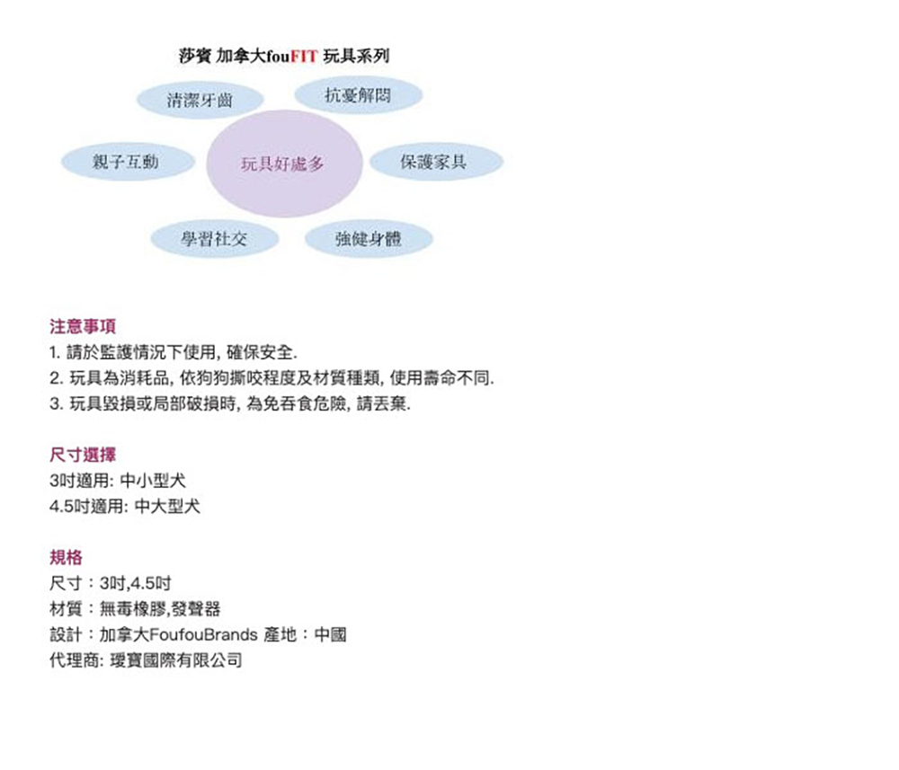 此為消耗性產品,嚴重撕咬導致產品破損時,請儘速將玩具收走,以免家中寶貝吞嚥內容物,若損壞應立即更換