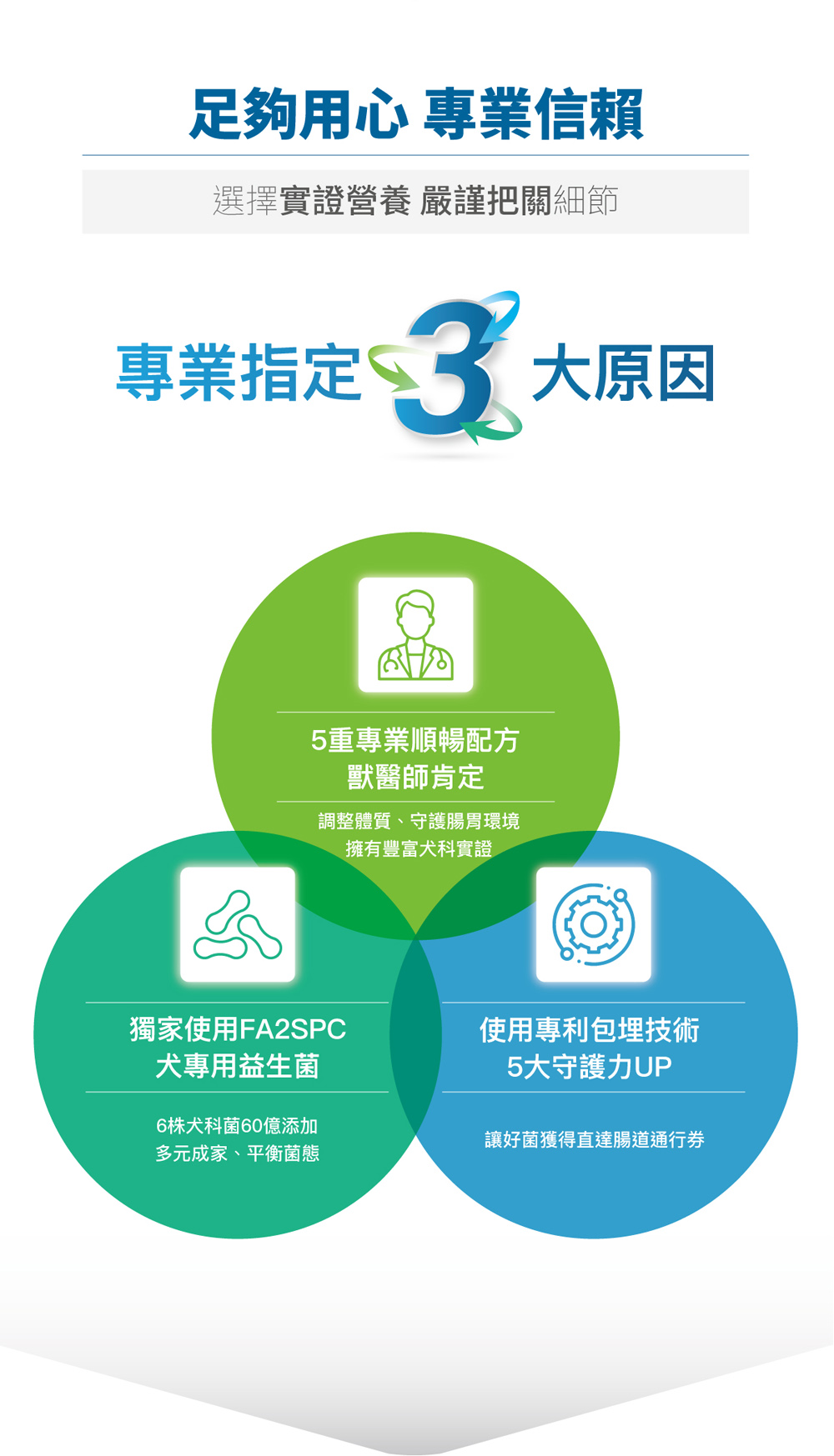 成份 : 可溶性膳食纖維(玉米來源)、菊苣纖維、果寡糖、FA2SPC犬 專用益生菌(嗜酸乳桿菌、動物雙歧桿菌、發酵乳桿菌、植 物乳桿菌、乾酪乳桿菌、孢子型乳酸菌)、n-zimes®綜合消 化酵素(麥芽糊精、澱粉分解酵素、植酸酵素、葡萄糖澱粉 酵素、中性蛋白質分解酵素、鳳梨酵素、蛋白質分解酵素 4.5、轉化酵素、蛋白質分解酵素、半纖維素分解酵素、果 膠酵素、α-半乳糖苷酶、蛋白質分解酵素AM、脂肪分解酵 素、胜肽分解酵素、乳糖分解酵素、蛋白質分解酵素6.0、 澱粉酵素、纖維素分解酵素AN)