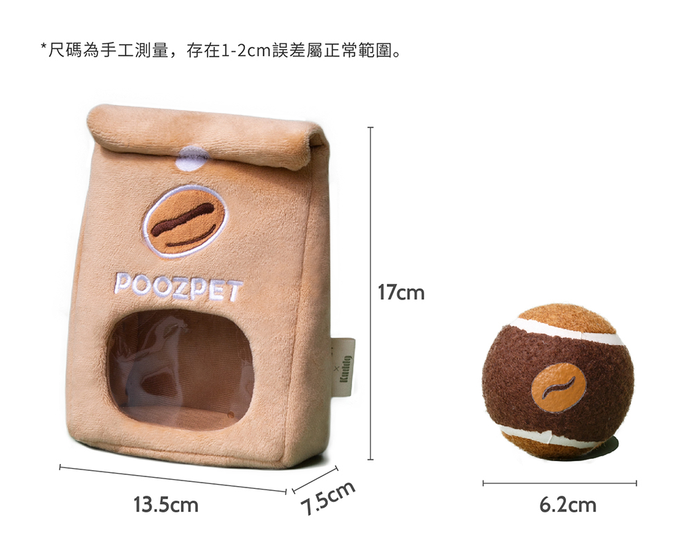 尺寸:咖啡豆袋 135x75x170mm、網球 62x62x62mm
