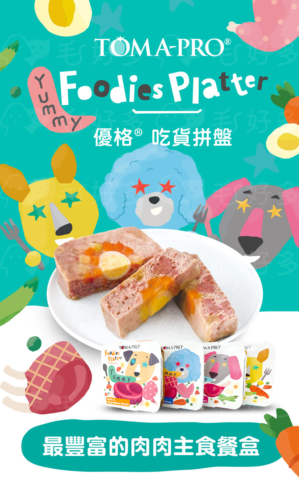 ● 最豐富的肉肉主食餐盒:雞、牛、羊、鮭魚等新鮮肉品搭配鵪鶉蛋、鮮蔬豐富配料