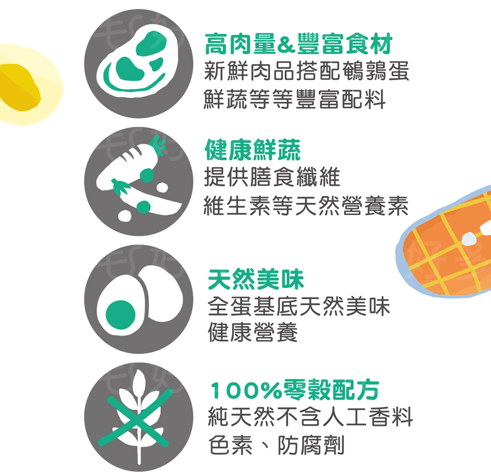 ● 100%零榖配方:純天然不含人工香料、色素、防腐劑