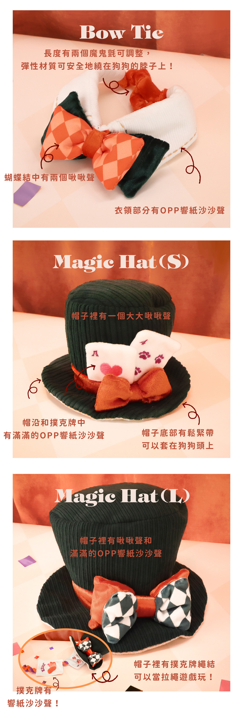 帽沿及帽子上的撲克牌有滿滿的OPP響紙沙沙聲,