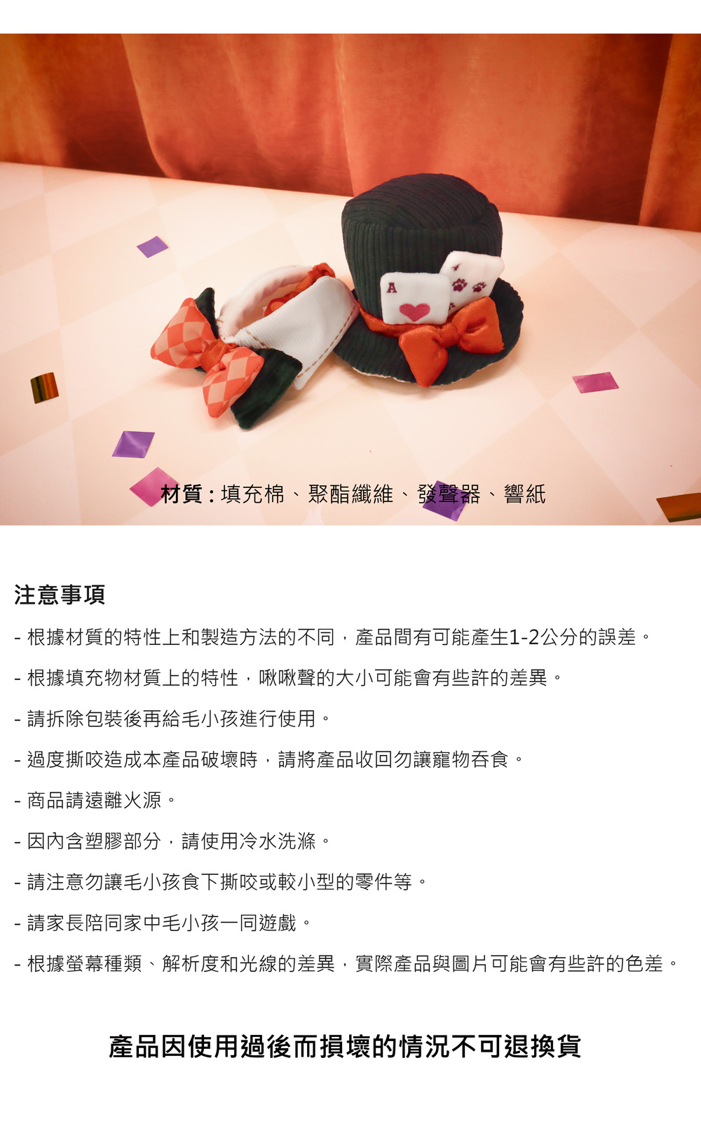 材質:填充棉、聚酯纖維、發聲器、響紙