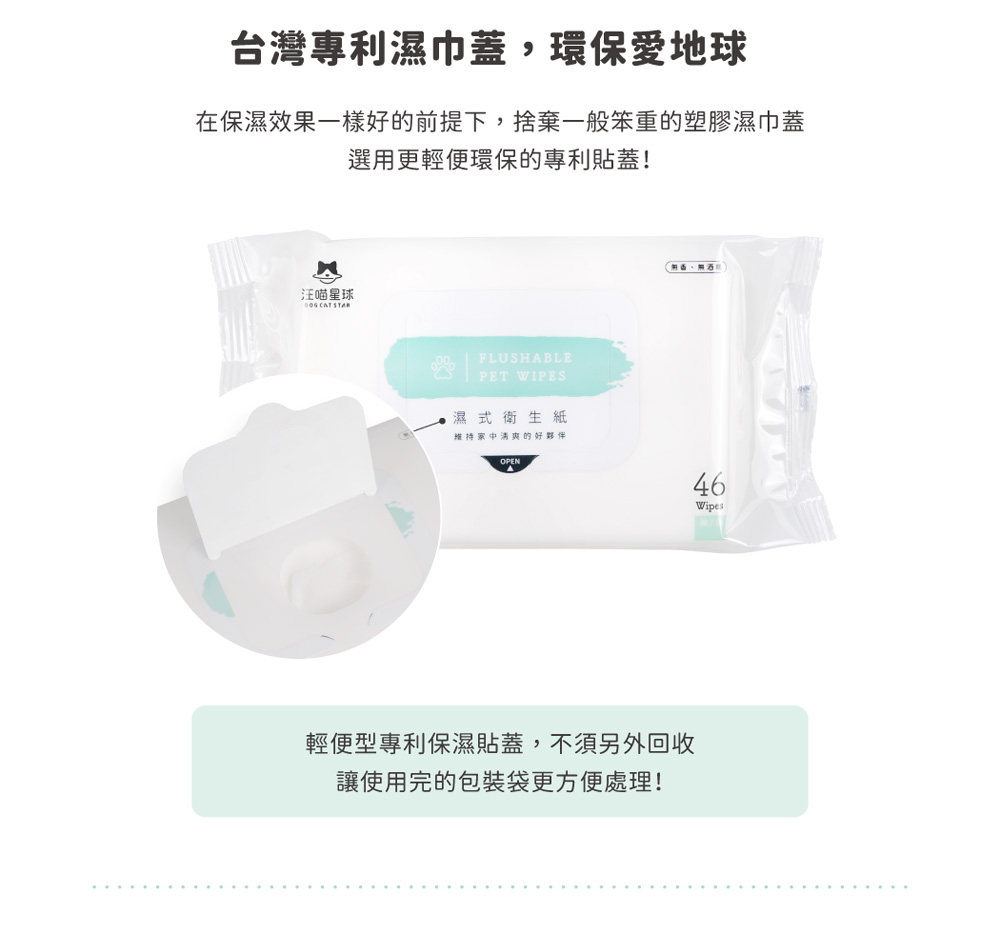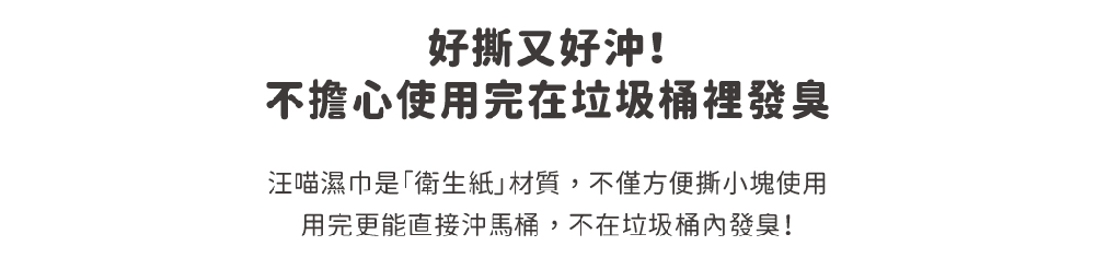 ● 毛孩專屬濕式衛生紙,好撕、可沖馬桶