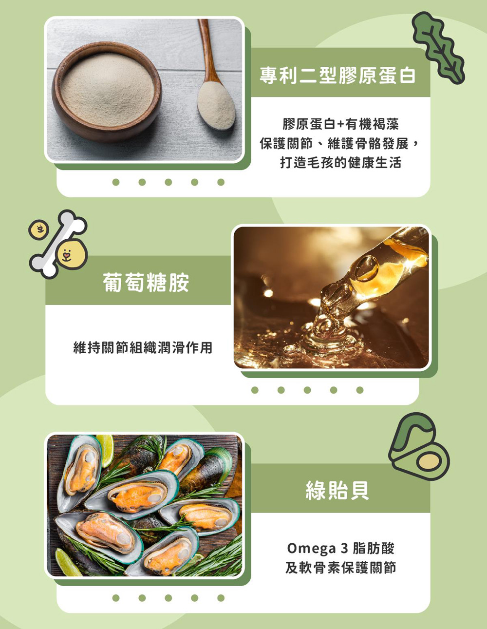 ● 綠貽貝 優質營養素保護關節