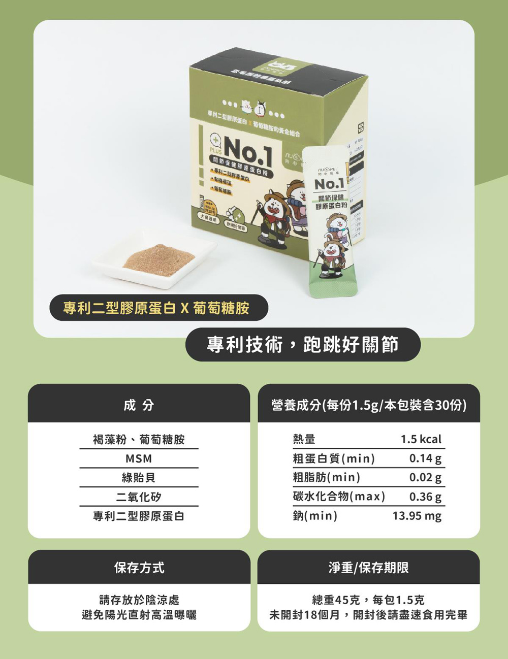 ● 專利二型膠原蛋白 x 葡萄糖胺 黃金組合