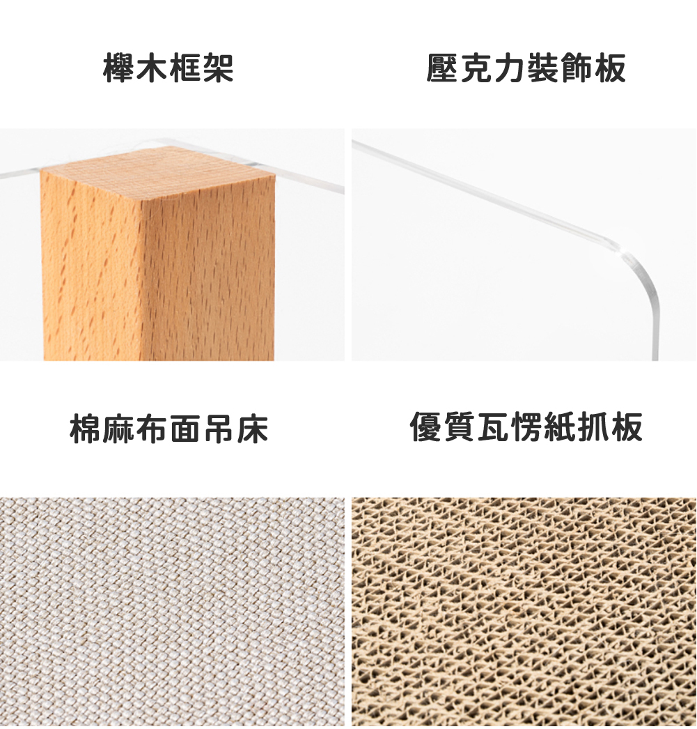 材質 : 壓克力、檜木、聚酯纖維、瓦愣紙