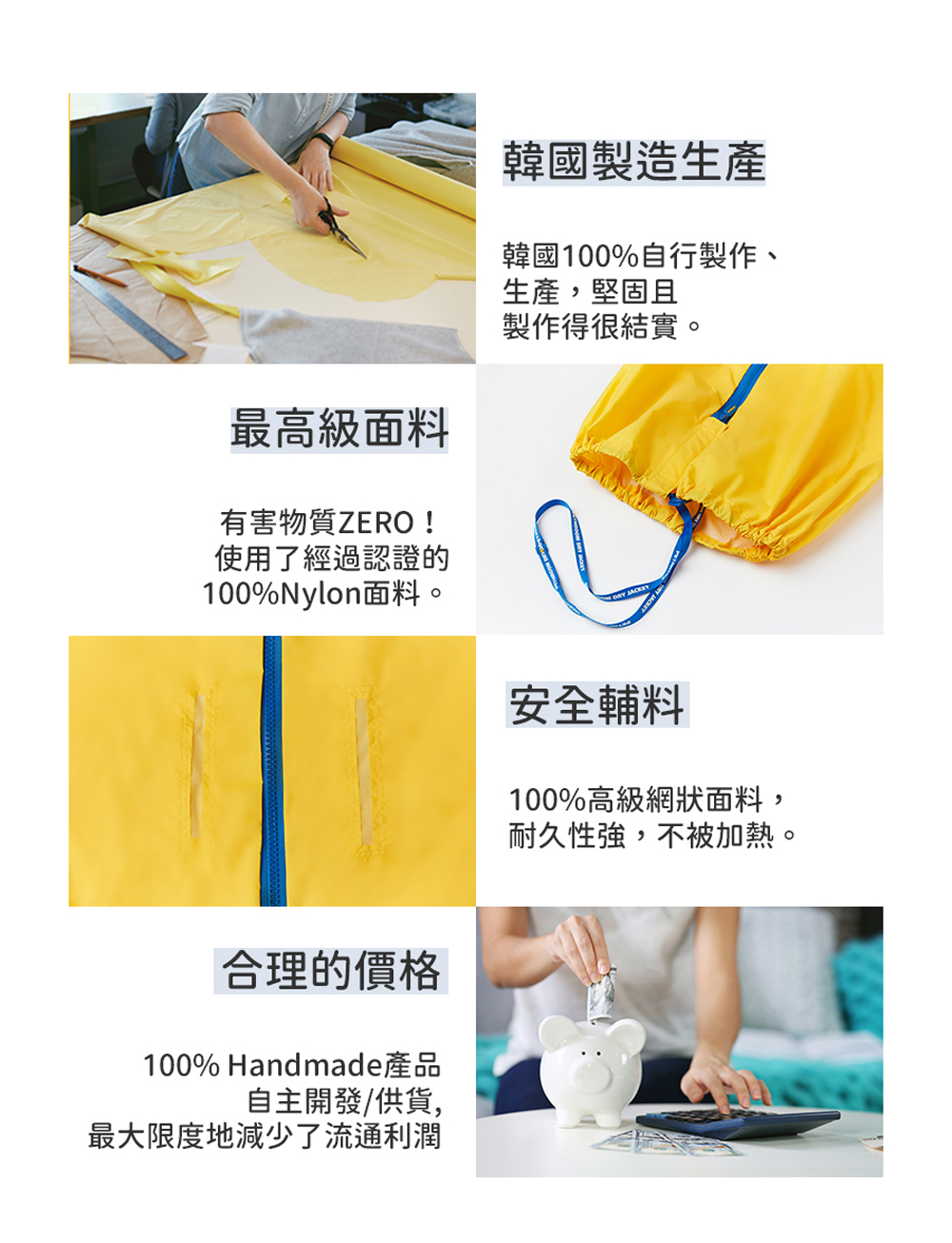 ● 高級面料 安全輔料