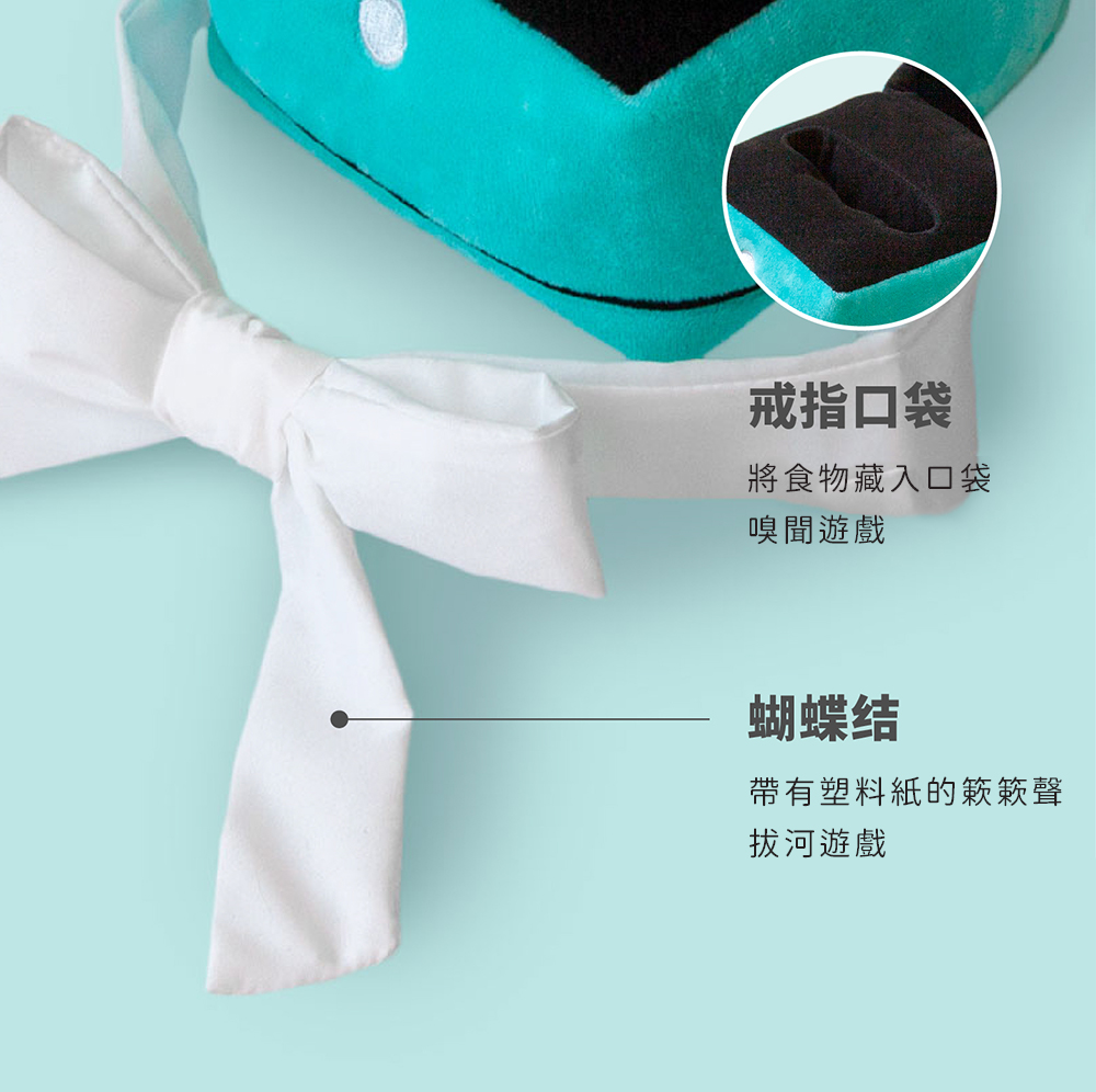 ● 戒指口袋可將食物藏入口袋玩嗅聞遊戲