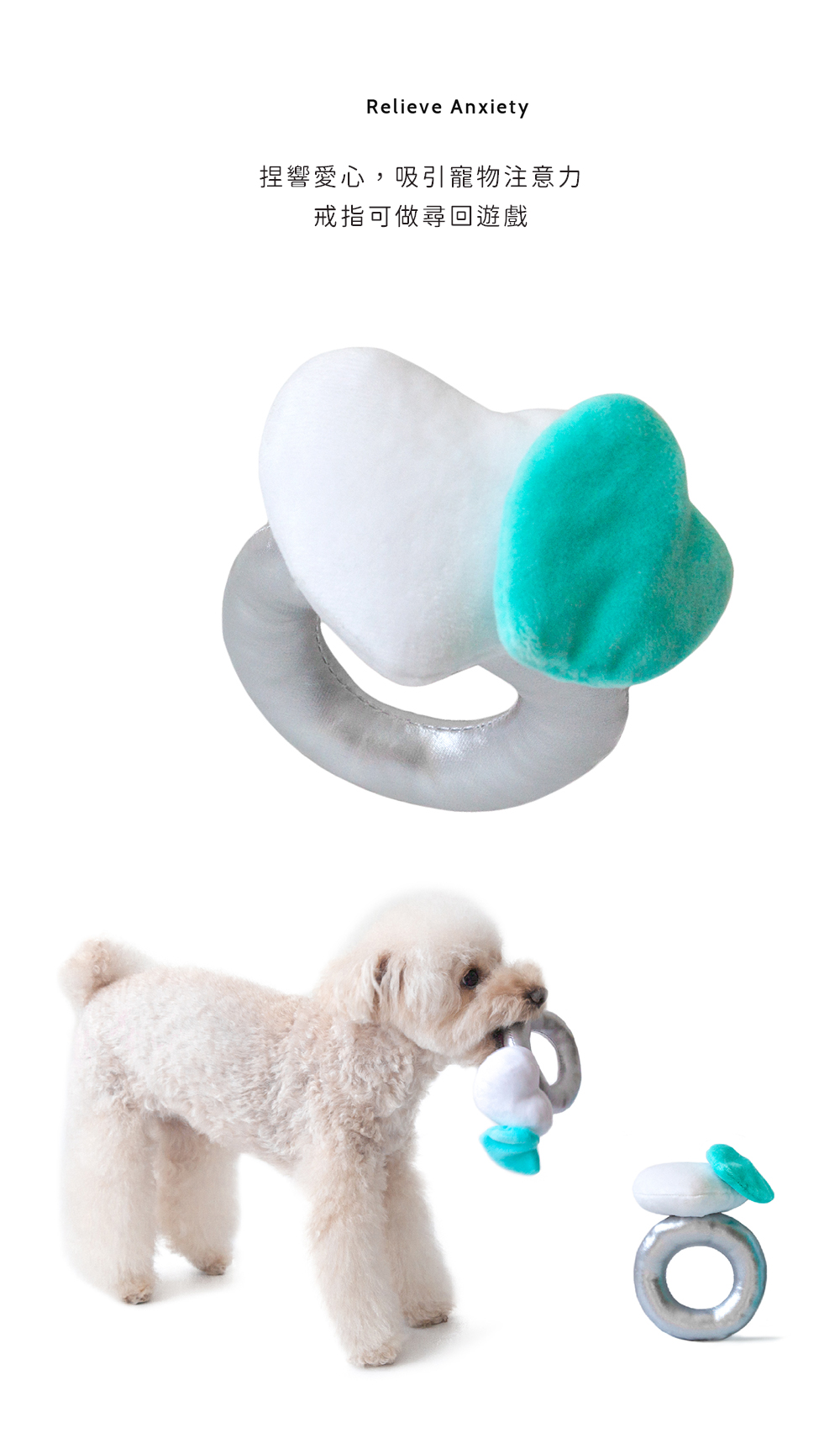 ● 戒指可捏叫引起寵物好奇心,玩尋回遊戲