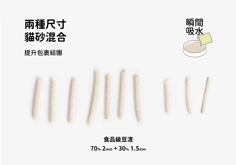 材質 : 食品級豆渣、澱粉、瓜爾豆膠