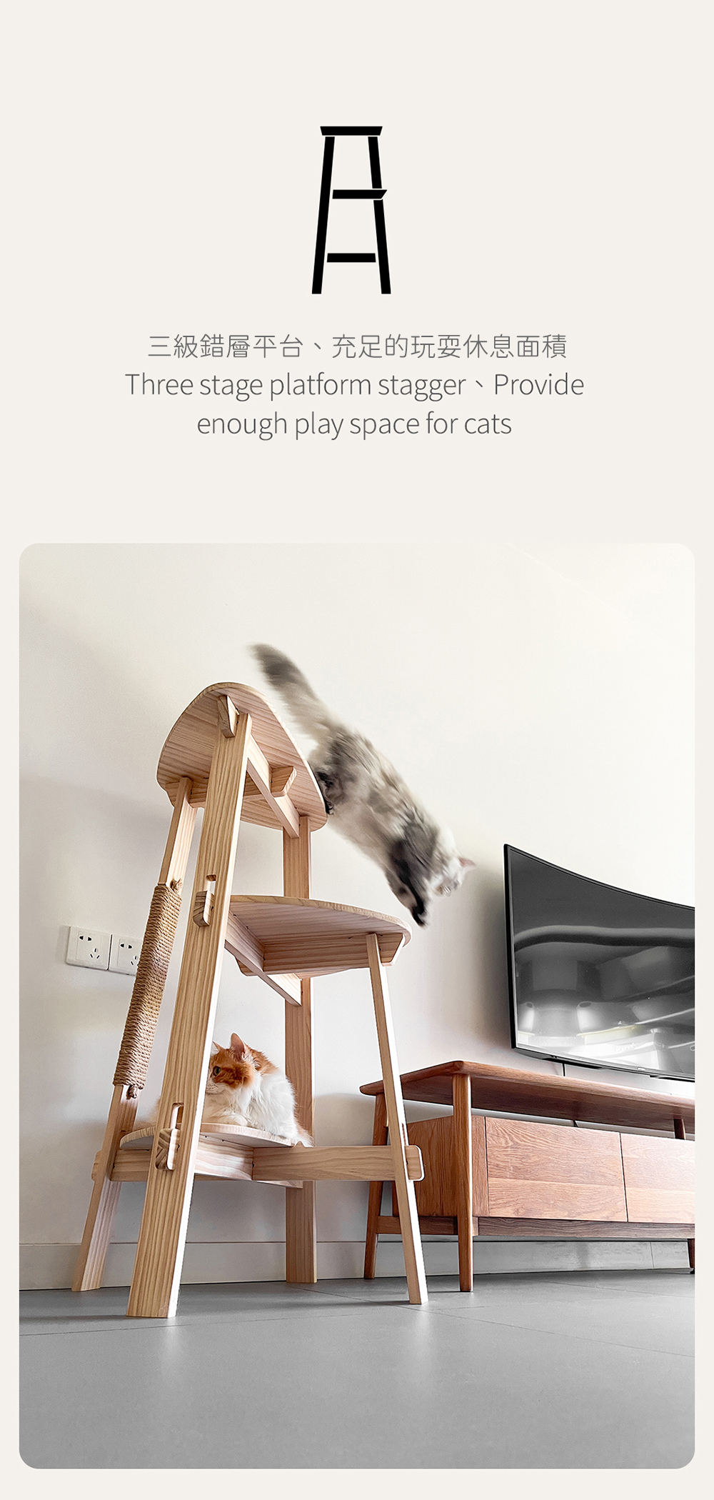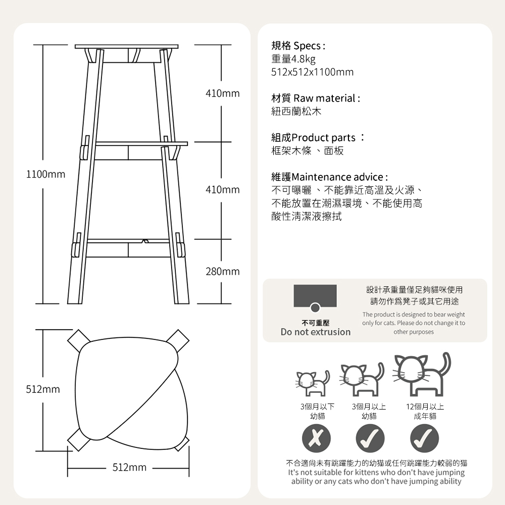 設計承重量僅足夠貓咪使用,請勿作為凳子或其他用途