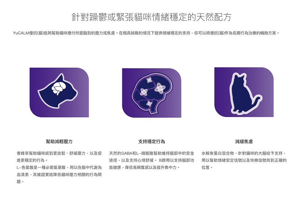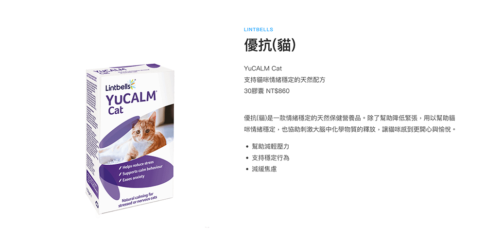 優抗(貓)是一款情緒穩定的天然保健營養品。除了幫助降低緊張,用以幫助貓咪情緒穩定,也協助刺激大腦中化學物質的釋放,讓貓咪感到更開心與愉悅。
