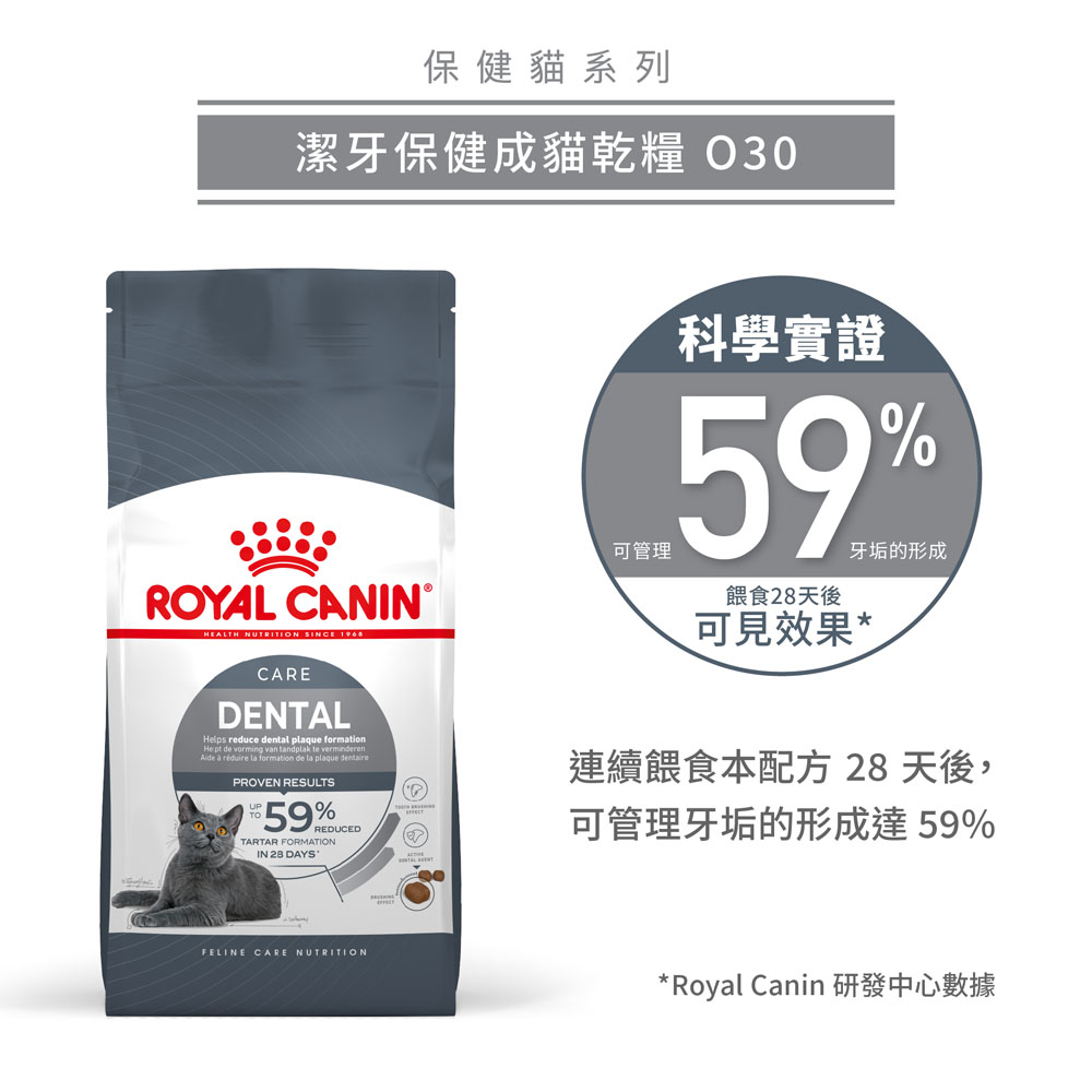 ● 連續餵食本配方 28 天後,可管理牙垢的形成達 59% 維持口腔衛生